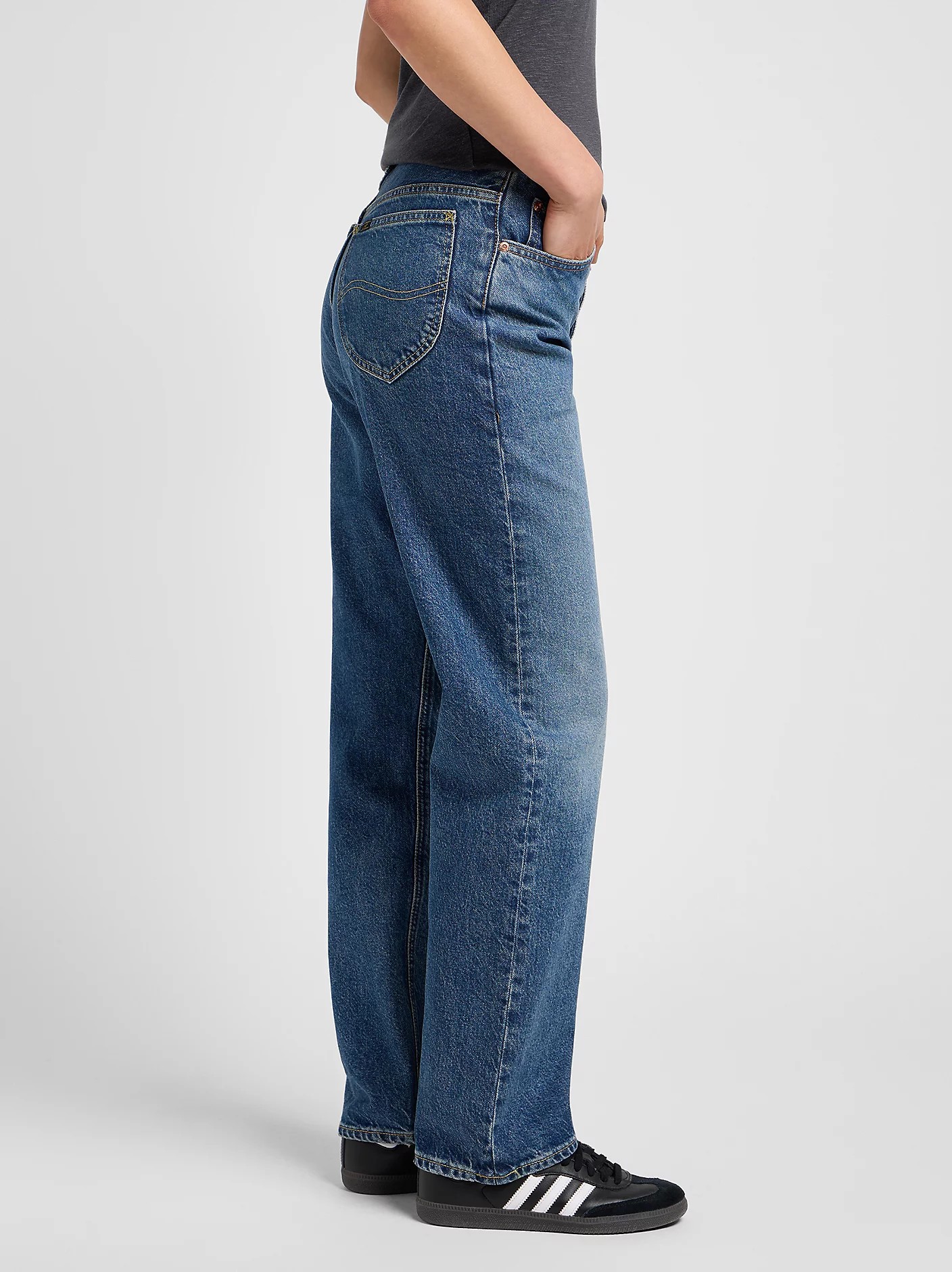 Этот плотный деним из тенсела изготовлен с высоким содержанием лиоцелла, что делает его более экологичным. Добавление эластана обеспечивает комфортную посадку. Джинсы выполнены в элегантном среднем синем оттенке с ярко выраженными контрастными высветлениями в области бедер и колен, что визуально придает форму. Завершает образ классический дизайн с пятью карманами, металлическими заклепками и фирменной пуговицей Lee. Контрастная строчка тёплого оранжевого оттенка гармонично дополняет джинсовую ткань.