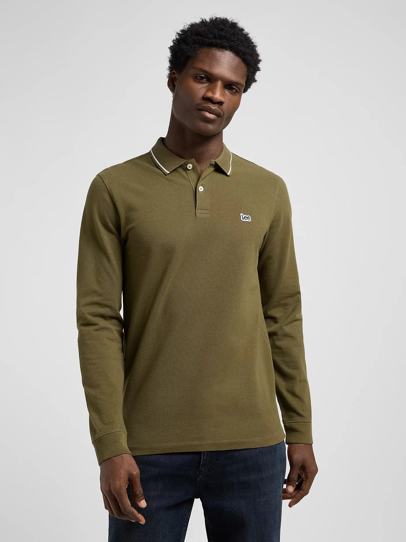 Поло с длинным рукавом и классическим прямым кроем. Подходит для повседневной носки и многослойных комплектов. Выполнено из хлопкового пике средней плотности, которое хорошо пропускает воздух. Модель выполнена в приглушённом зелёном оттенке Army Green. Двухпуговичная планка застёгивается на перламутровые пуговицы, на груди вышит фирменный логотип Lee.