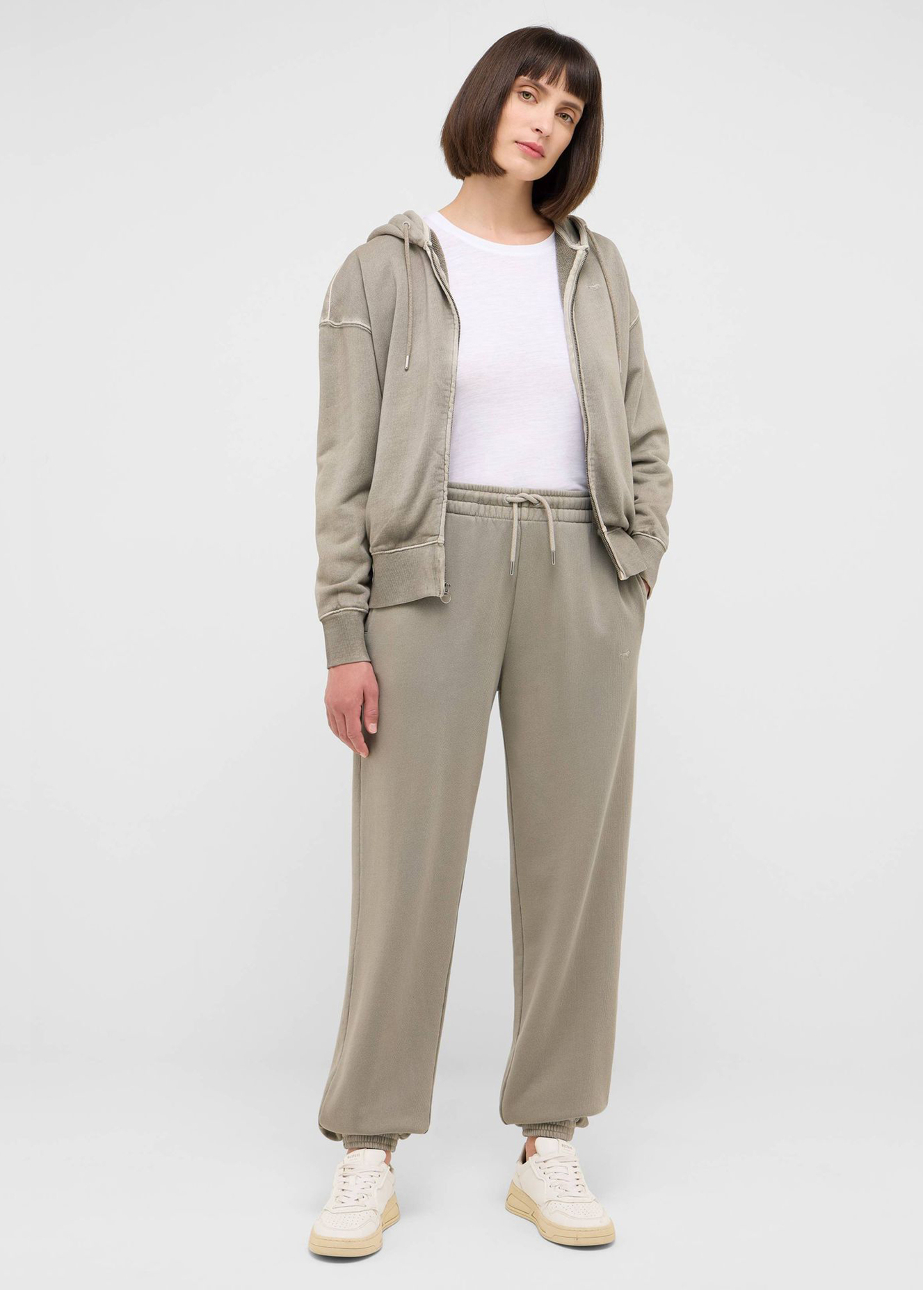 Толстовка на молнии, выполненная из чистого хлопка. Оснащена капюшоном со шнурком, боковыми карманами и эластичными манжетами. Эффект лёгкого «спиленного» окрашивания придаёт модели выразительный вид. Подходит для повседневной носки в прохладное время года.