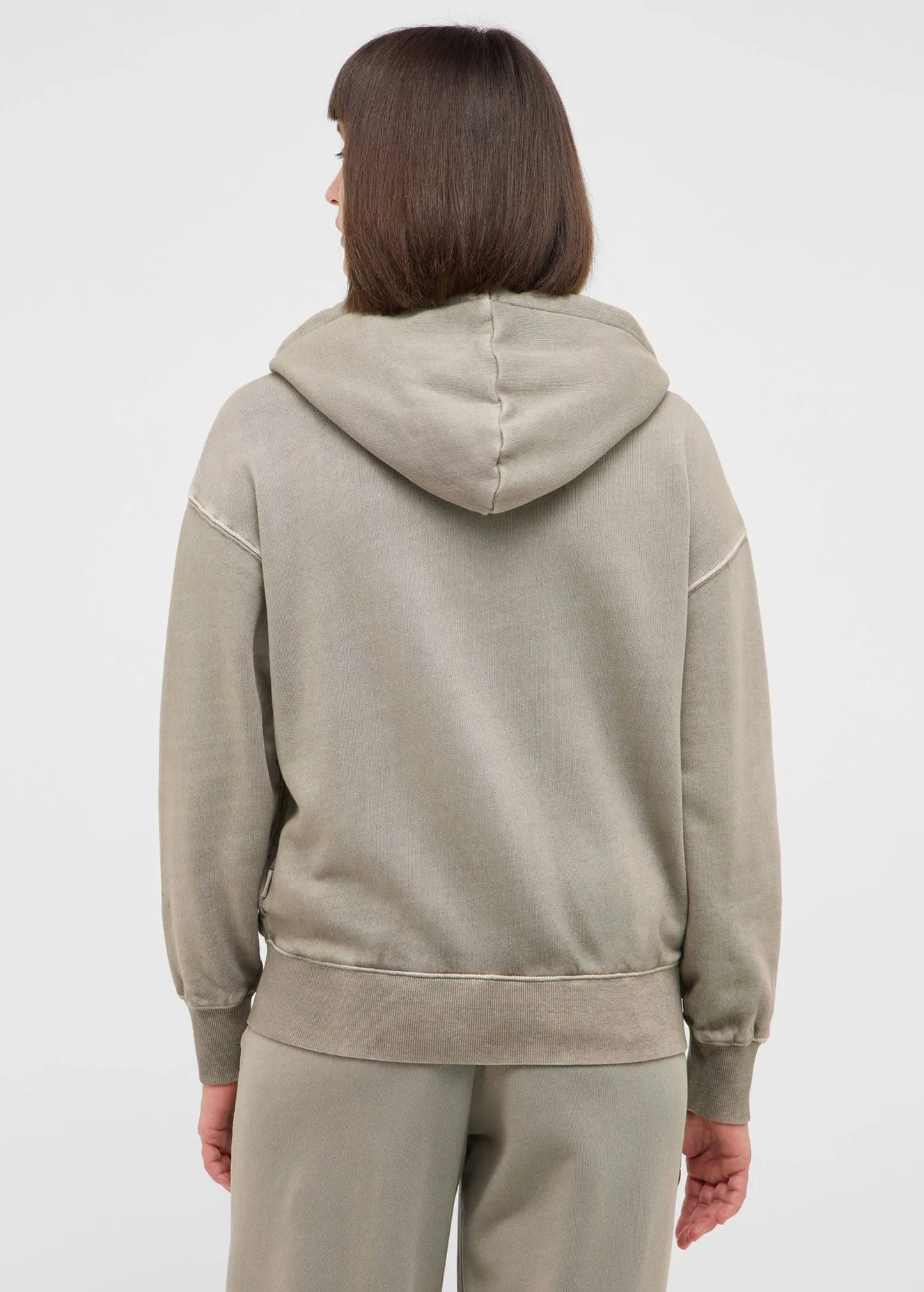 Толстовка на молнии, выполненная из чистого хлопка. Оснащена капюшоном со шнурком, боковыми карманами и эластичными манжетами. Эффект лёгкого «спиленного» окрашивания придаёт модели выразительный вид. Подходит для повседневной носки в прохладное время года.
